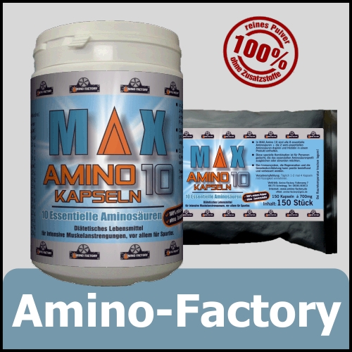 In MAX Amino 10 sind alle 8 essentielle Aminosäuren + die 2 semi-essentiellen Aminosäuren Arginin und Histidin in einem Produkt enthalten.