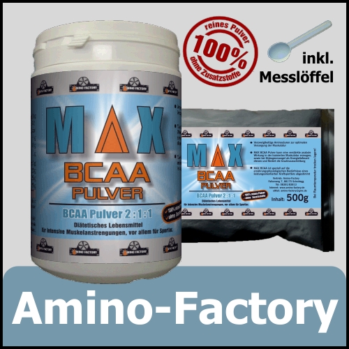 Erhältlich in der 500g Dose und im 500g Nachfüllbeutel.Die BCAAs (Branched Chain Amino Acids), die auf Deutsch verzweigtkettige Aminosäuren genannt werden, zählen zu den essentiellen Aminosäuren.