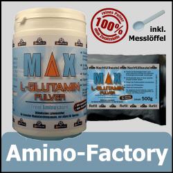| Sportler haben einen erhöhten Bedarf an L-Glutamin, denn es dient als Stickstoffspender für die Muskulatur und fördert die Regeneration nach einem intensiven Training. Aber L-Glutamin kann noch viel mehr: Da es über zwei Stickstoffatome verfügt, hilft es Ermüdungserscheinungen vorzubeugen, z. B. kann bei einem intensiven Krafttraining Eiweiß aus der Muskelzelle zur Energiegewinnung herangezogen werden. Bei dieser Art der Energiegewinnung erhöht sich auch der Ammoniakspiegel; ein erhöhter Ammoniakspiegel mindert die Energiebereitstellung und führt wiederum zu einer vorzeitigen Ermüdungserscheinung. Die jetzt frei werdenden Aminosäuren können vom L-Glutamin gebunden und die Ermüdung der Zellen kann verzögert werden. |