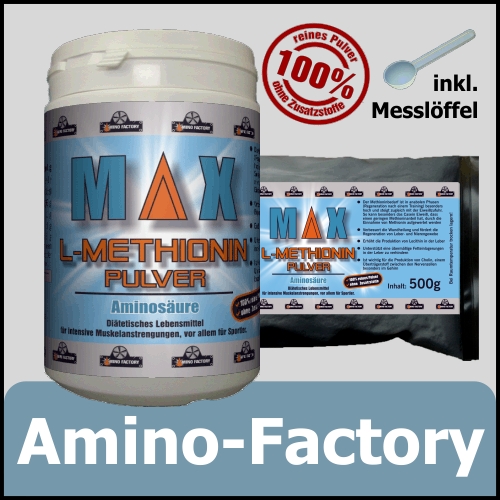 Erhältlich in der 100g + 500g Dose und im 500g Nachfüllbeutel.L-Methionin ist eine essentiell Aminosäure und muss daher stets in ausreichender Menge über die Nahrung aufgenommen werden.